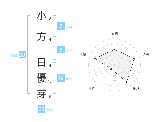 小方 日優芽さんを姓名の画数から五運を鑑定