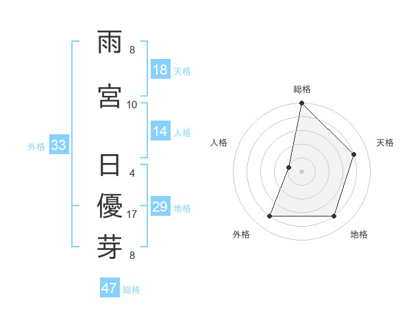 雨宮 日優芽さんの総格は47画の5点!