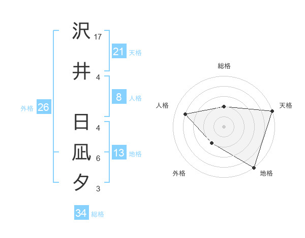 沢井 日凪夕さんを姓名の画数から五運を鑑定