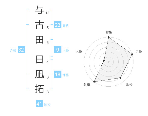 与古田 日凪拓さんを姓名の画数から五運を鑑定