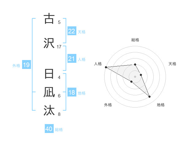 古沢 日凪汰さんの天格は22画の1点!