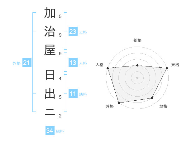 加治屋 日出ニさんを姓名の画数から五運を鑑定