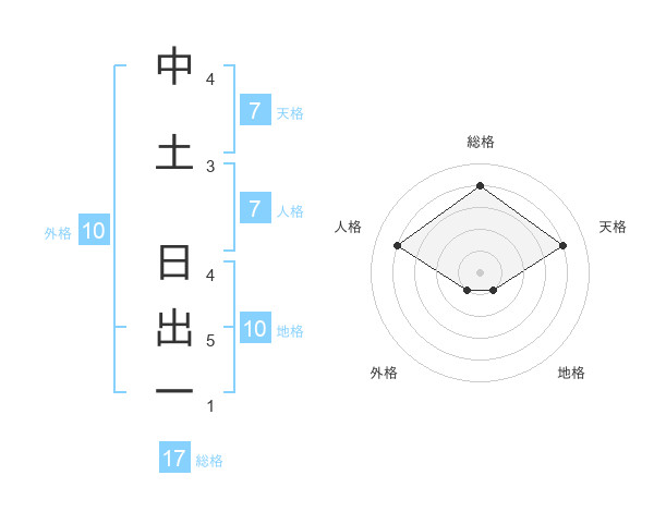 中土 日出一さんの総格は17画の4点!