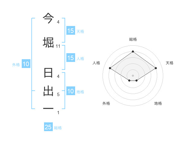 今堀 日出一さんの総格は25画の4点!