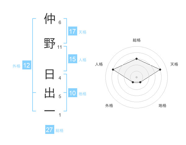 仲野 日出一さんを姓名の画数から五運を鑑定