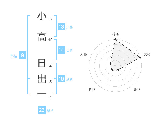 小高 日出一さんの総格は23画の5点!