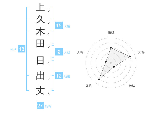 上久木田 日出丈さんの総格は27画の3点