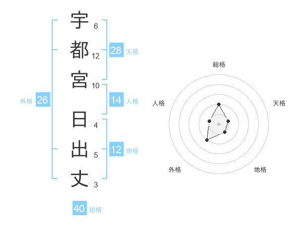 宇都宮 日出丈さんを姓名の画数から五運を鑑定