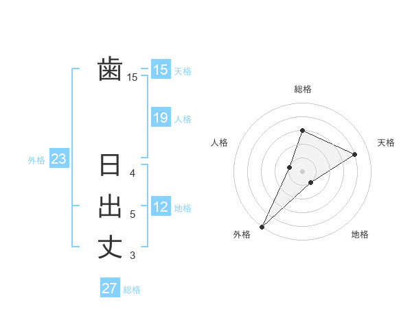 歯 日出丈さんを姓名の画数から五運を鑑定