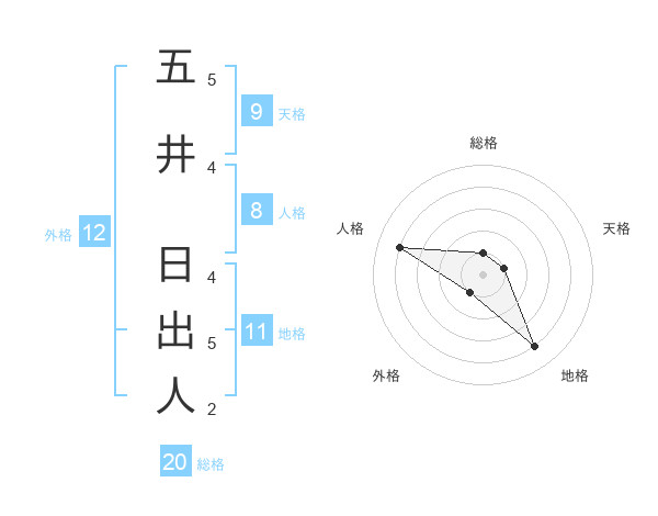 五井 日出人さんの総格は20画の1点!