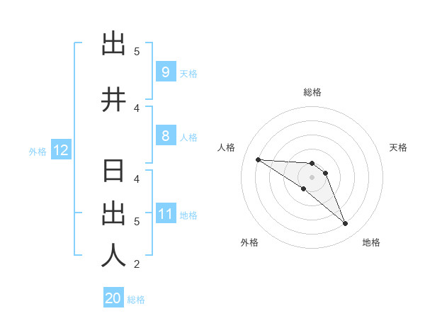 出井 日出人さんの総格は20画の1点