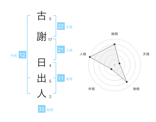 古謝 日出人さんの天格は22画の1点!