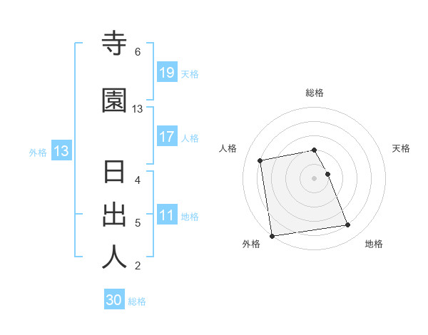 寺園 日出人さんを姓名の画数から五運を鑑定