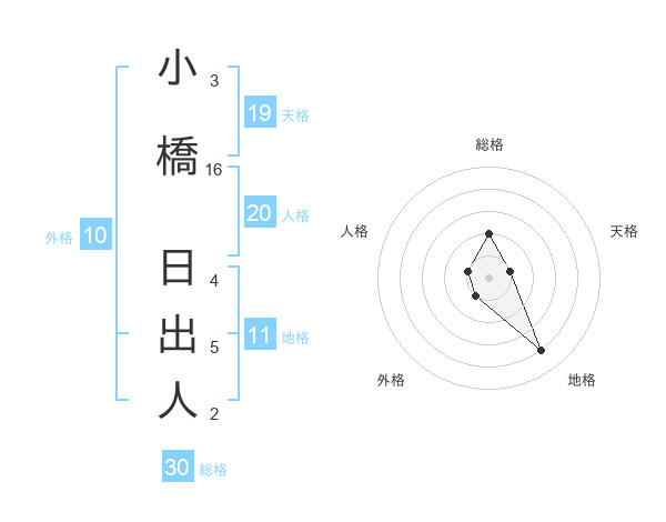 小橋 日出人さんを姓名の画数から五運を鑑定