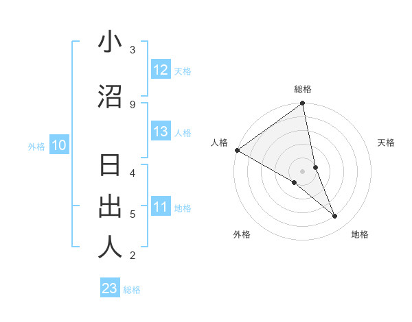 小沼 日出人さんの総格は23画の5点!