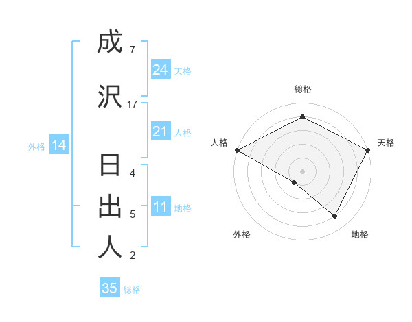 成沢 日出人さんの総格は35画の4点!