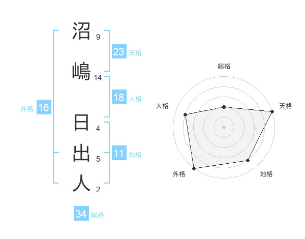 沼嶋 日出人さんを姓名の画数から五運を鑑定