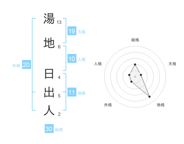 湯地 日出人さんを姓名の画数から五運を鑑定