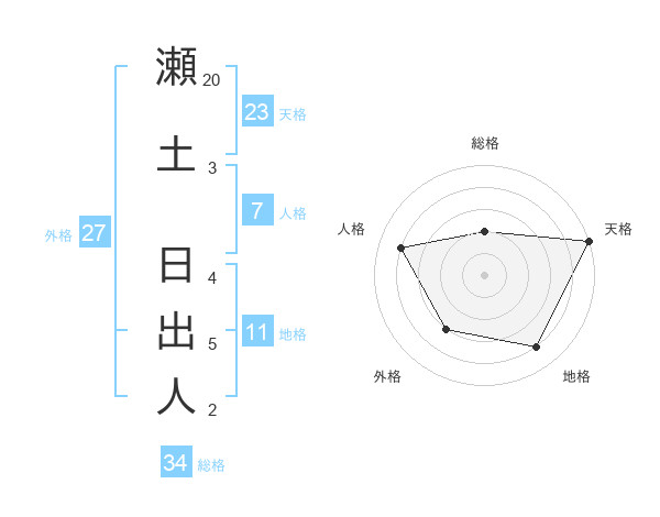 瀬土 日出人さんの天格は23画の5点!