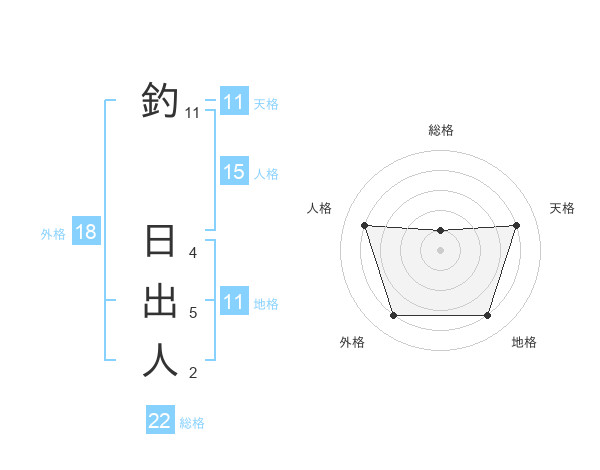 釣 日出人さんの総格は22画の1点!