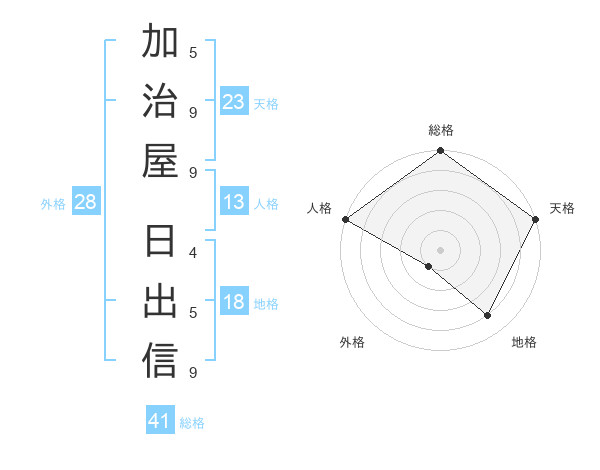 加治屋 日出信さんを姓名の画数から五運を鑑定