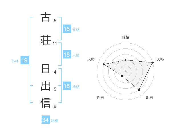 古荘 日出信さんを姓名の画数から五運を鑑定