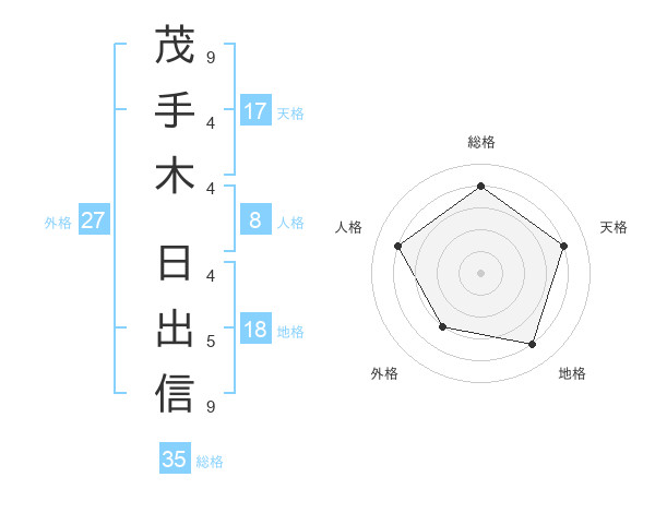 茂手木 日出信さんを姓名の画数から五運を鑑定