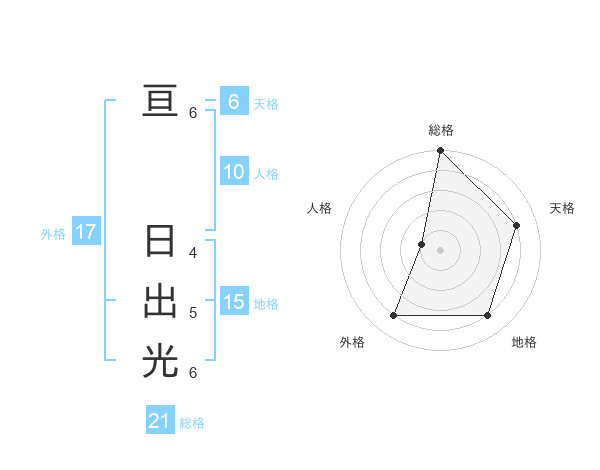 亘 日出光さんの総格は21画の5点!