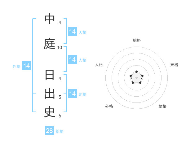 中庭 日出史さんを姓名の画数から五運を鑑定