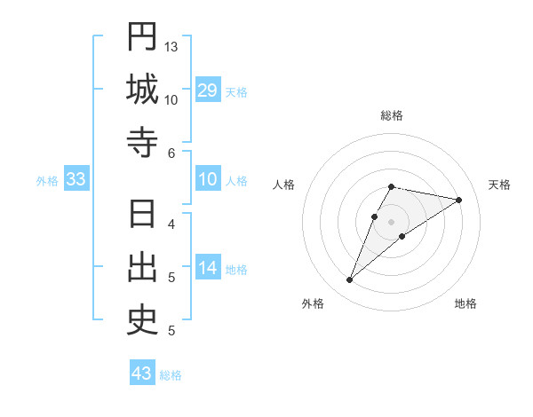円城寺 日出史さんの総格は43画の2点!