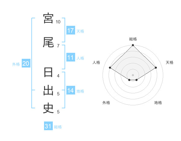 宮尾 日出史さんの総格は31画の5点!