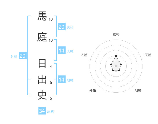 馬庭 日出史さんを姓名の画数から五運を鑑定