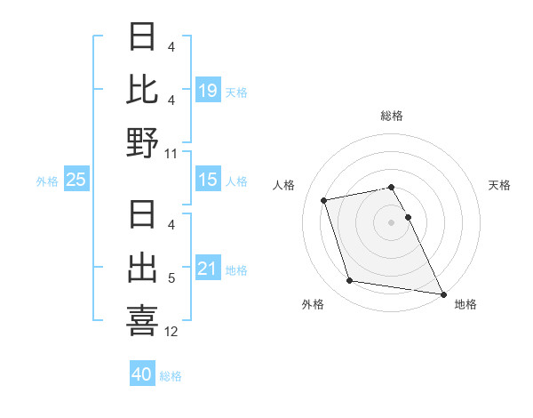 日比野 日出喜さんを姓名の画数から五運を鑑定