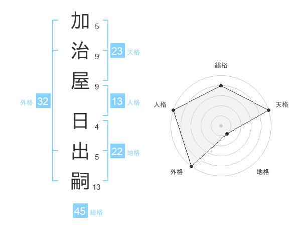 加治屋 日出嗣さんを姓名の画数から五運を鑑定