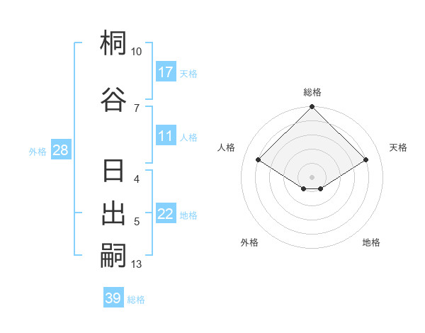 桐谷 日出嗣さんを姓名の画数から五運を鑑定