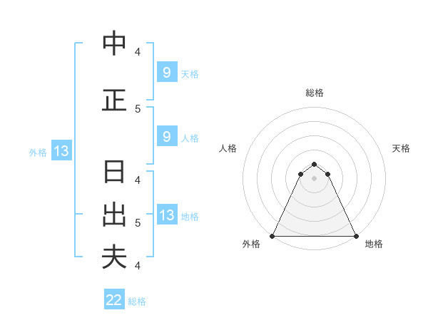 中正 日出夫さんの外格は13画の5点!