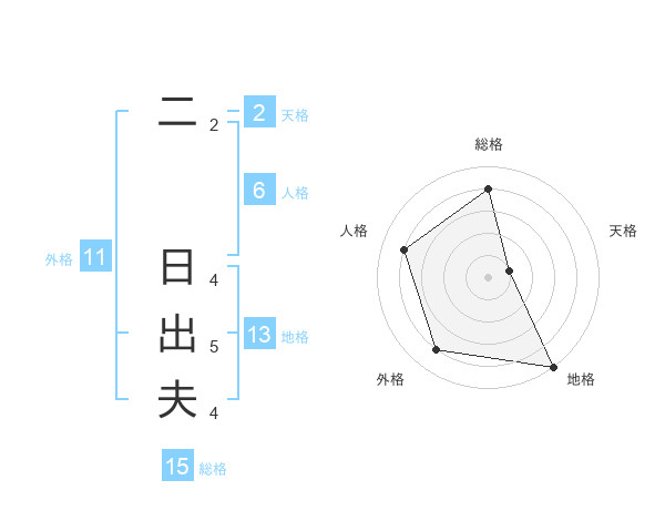 二 日出夫さんの総格は15画の4点!