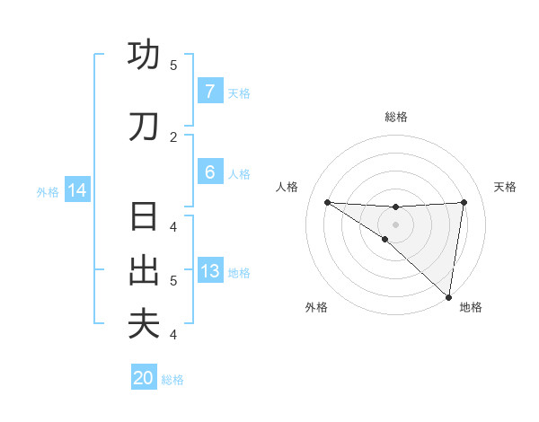 功刀 日出夫さんを姓名の画数から五運を鑑定
