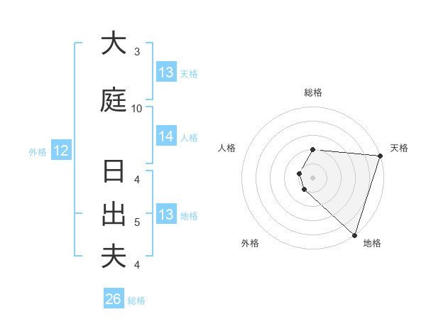 大庭 日出夫さんを姓名の画数から五運を鑑定