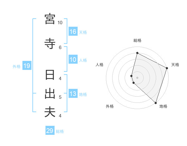 宮寺 日出夫さんの総格は29画の4点!