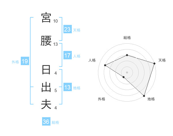 宮腰 日出夫さんを姓名の画数から五運を鑑定