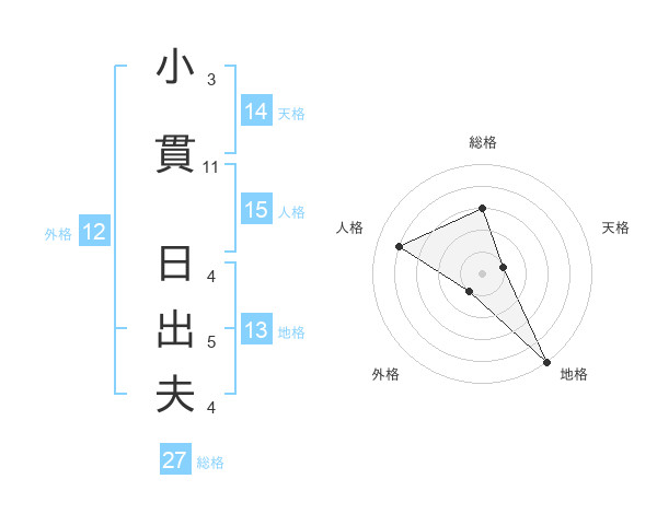 小貫 日出夫さんを姓名の画数から五運を鑑定