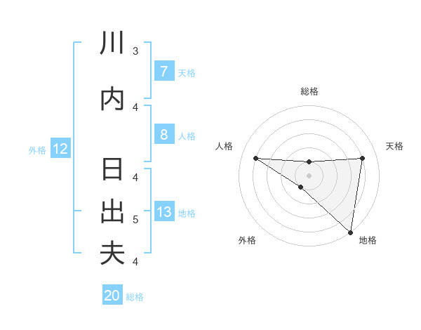 川内 日出夫さんを姓名の画数から五運を鑑定