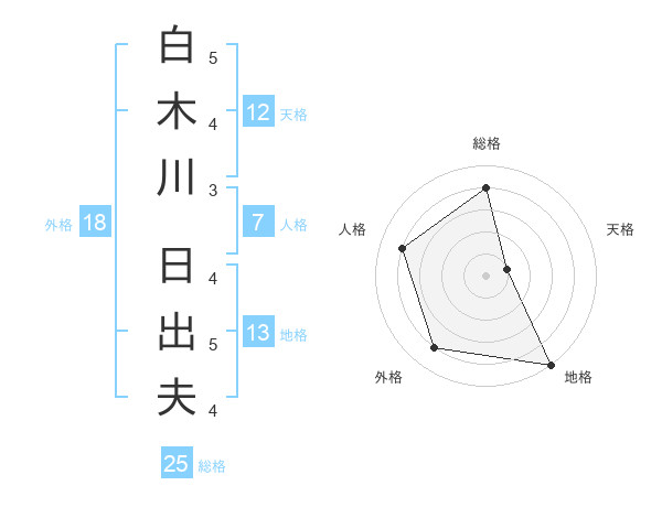 白木川 日出夫さんを姓名の画数から五運を鑑定