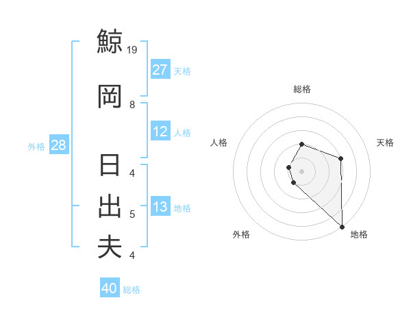 鯨岡 日出夫さんの総格は40画の2点!