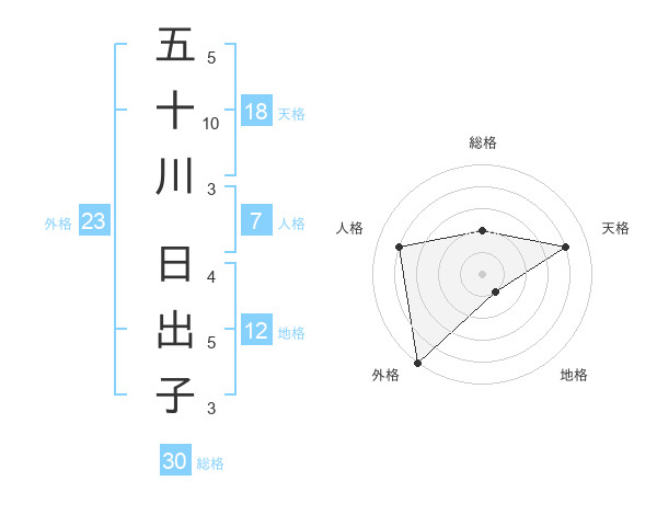 五十川 日出子さんを姓名の画数から五運を鑑定