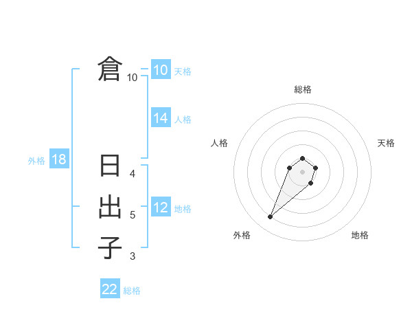 倉 日出子さんの総格は22画の1点!