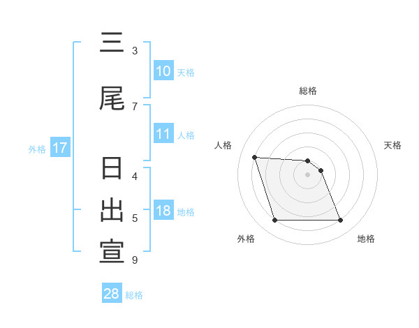 三尾 日出宣さんを姓名の画数から五運を鑑定