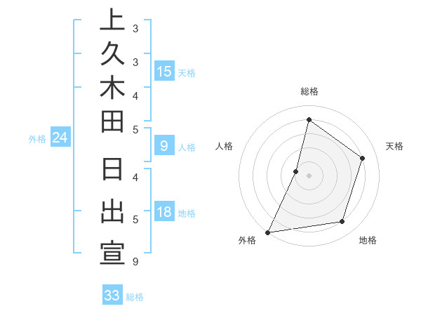 上久木田 日出宣さんの総格は33画の4点