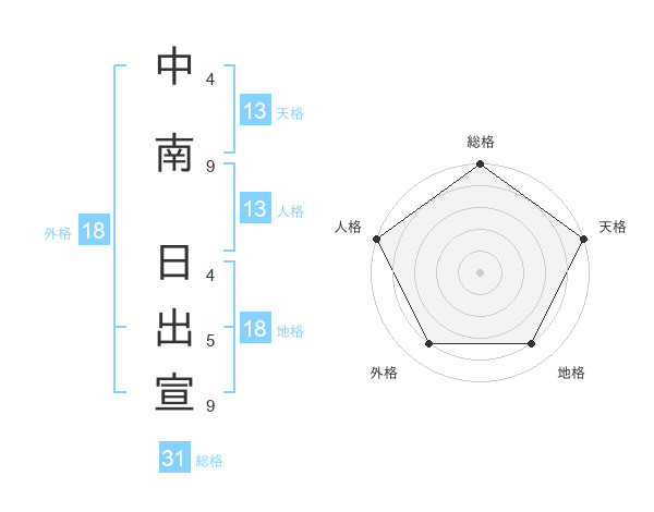 中南 日出宣さんの天格は13画の5点!